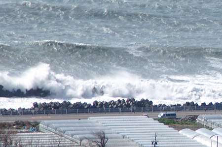 うぁ!車が飲み込まれそうなくらいの波だ![]()